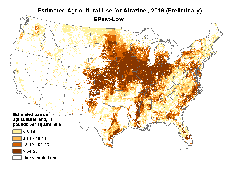 Featured image: Atrazine use in the United States in 2016. Photo taken from U.S. Geological Survey website